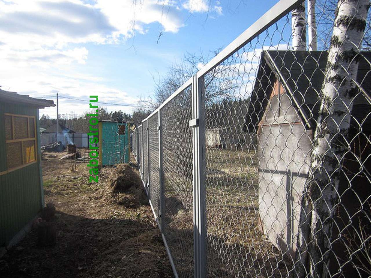 Заборы из сетки рабица в секциях из профиля 58 метров